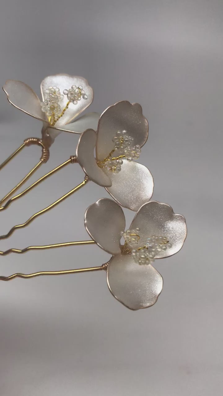 Pearl Flower Hair Pin. Shimmering White Bridal Accessory